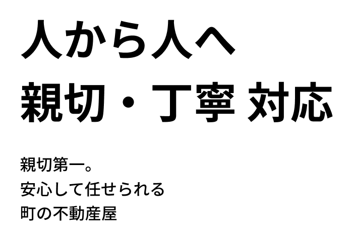 「不動産の売却、購入をお願いして良かった」と思ってもらえる対応で、安心して任せられる不動産会社として多くの信頼をいただけるよう努めて参ります。